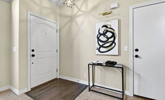 There is a living space upon entering the home with the kitchen, dining, and master bedroom on the main level, and remaining two bedrooms and bathroom on upper level. The finished basement is a second living space with the coziest sectional, perfect for lounging and enjoying movie nights. A projector is included, with streaming capabilities.About pets:Pets allowed: less than 50 lbs per pet (limit one pet total).About checkOut:Check out before 11:00 AM.About children:Children allowed: ages 0-17.About checkIn:Check in after 4:00 PM.About smoking:Smoking is not permitted.About minBookingAge:Minimum age to rent: 21.About events:No events allowed.