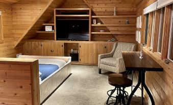 The Loft Includes a Queen Bed, TV, Apple TV, Wifi, Keurig Coffee Machine, Microwave, Mini-fridge, Dishes-Silverware-Cups-Glasses, High-top Table and Stools, Pull-Down Shades, Bath Towels, Bed Linens, Clothes Hangers, Toilet Paper, Pillows, Blankets, Fire Extinguisher, Heating / Air-Conditioning.About pets:No pets allowed.About checkOut:Check out before 11:00 AM.About children:Adults only.About checkIn:Check in after 3:00 PM.About smoking:Smoking is not permitted.About minBookingAge:Minimum age to rent: 21.About events:No events allowed.