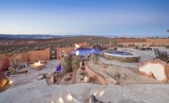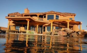 The KOKOPELLI HOUSE at Lake Powell, WINNER OF 2015 POOL OF THE YEAR, is a gorgeous luxurious home of over 4400 square feet under roof with an additional 2000 usable exterior SF that sits on over an acre of private land bordering open space high on the Manson Mesa overlooking spectacular LAKE POWELL, the beautiful COLORADO RIVER, stunning desert plateaus, mesas, canyons, cliffs and plateaus. If you are looking for a comfortable, luxurious place to base out in exploring this vast legendary area, or if you wish to relax with a cold drink on the patio and marvel at the magnificent desert and lake scenery, this home is ideal. The sunsets on the balcony overlooking the fantastic pool and waterfalls are EPIC!