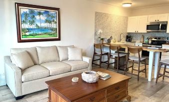 1-bedroom, 1-bathroom condo in Kuau Plaza. The king bed and comfortable sleeper sofa accommodate up to four. A pack-n-play crib is available.
