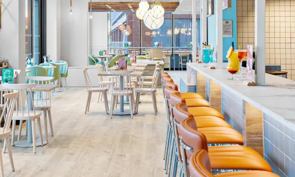 The ibis Styles Paignton is in an unbeatable seafront position on Esplanade Road, a stone's throw from Paignton beach with a spectacular sunset terrace looking out to sea. The unique interior design is inspired by mythical shorelines, with subtle touches that make every stay magical. Use the shipwreck-themed social space to relax or meet with friends; grab a pre-dinner cocktail or a bite to eat, soak up sunshine on the terrace or work remotely with a beautiful backdrop.