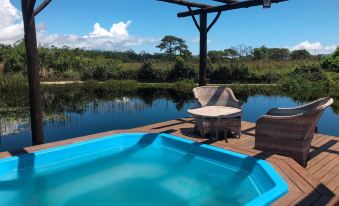 Tudo que você vê nas fotos está lá: a piscina, o ofurô, a passarela sobre o lago, então é um local bem bonito. O atendimento do Nicolas também e muuuito bom. Entretanto tem dois problemas que preciso registrar: 1) O ar condicionado estava muito sujo. Isso é particularmente preocupante para quem tem renite ou alergia. 2) Havia mofo nos cantos de algumas paredes do quarto, o que pode provocar problemas respiratórios se inalado e também provoca mau odor no quarto. Por se tratarem de questões que afetam diretamente a saúde dos hóspedes não tenho como dar uma avaliação positiva. Deixo aqui o registro esperando que a gerência consiga solucionar estes problemas proporcionando maior conforto e higiene para os futuros hóspedes.