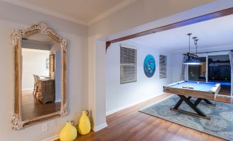 Exactly as the pictures showed! We spent almost the entire 3 weeks in the backyard by the pool. The tiki bar with couch, TV, overhead fans and shades was perfect and relaxing. The pool and spa were gorgeous too. The house was clean, furnished beautifully and very functional. Aleksander was very communicative when we had an issue with the pool light and got it taken care of quickly. Great vacation house!