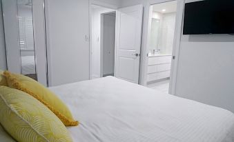 After many stays in Palm Cove (mostly at Reef House), this condo provided the ultimate alternative experience. Magic sunrises. Wonderful uninterrupted views of palm trees and Coral Sea from the living area and bedroom. A very large 3-bedroom apartment overlooking the beach, so modern and pristine and with the best kitchenware and BBQ for cooking fresh-caught barramundi and huge green prawns (bought at Preston Fresh Seafood, near Smithfield). We only used the main bedroom; the other rooms would be charged at an extra rate. The king-size bed was excellent, with good quality linen and the bathroom was excellent, though only an athlete could use the spa. Well equipped laundry. Great kitchen, family room etc and an expansive deck looking on to the Coral Sea. There's secure car-parking on the ground floor We'll be back if the price is right!