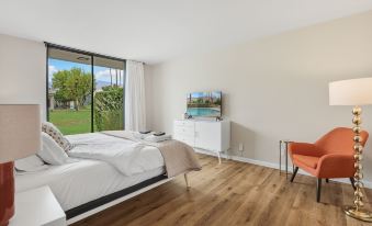 Grand Bahama is located in a quiet condo community in the highly desirable South Palm Springs. This updated condo offers everything needed for a comfortable stay (minimum 30 days). You'll feel right at home in this beautiful space. Kick off your shoes and relax in midcentury modern style. Gaze at the beautiful views of Mt. San Jacinto while you sip coffee on the patio or the couch. Go for a dip in the heated pool or jacuzzi, play a relaxed game of tennis or pickle ball at the tennis courts.