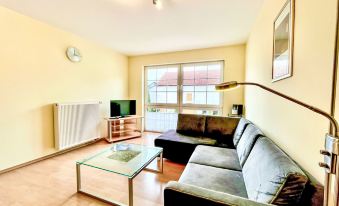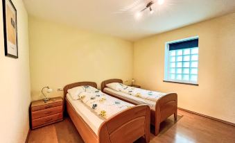 Apartment house "Zum Trichter". In the centre of Palzem, located by a road. For shared use: garden, lawn for sunbathing. Terrace, garden furniture. In the house: central heating system. Public parking on the road. Shop 5 km, supermarket 5 km, restaurant 50 m, bus stop "Palzem" 200 m, railway station "Palzem" 200 m, outdoor swimming pool 5 km, indoor swimming pool 13 km. Tennis 5 km. Please note: car recommended. Bicycle storage on request. 2-room apartment 40 m2 on 1st floor. Object suitable for 2 adults. Modern and tasteful furnishings: living/dining room with satellite TV. 1 room with 2 beds. Kitchenette (oven, dishwasher, microwave, freezer, electric coffee machine). Shower/WC. Please note: non-smokers only. Smoke alarm. The double bedroom does not have a window but glass bricks. Bookings accepted for holiday purposes only.