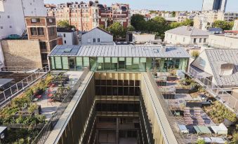lyf Gambetta Paris is an urban hotel in the heart of the 20th arrondissement, offering a unique Parisian experience away from tourist crowds. Housed in a printing factory, it features stylish communal spaces, a shared kitchen, bar, coworking area, gym, and relaxing patios. Rooms and studios combine industrial design with modern comforts like fast Wi-Fi, Chromecast, and private bathrooms. The vibrant lyf community ensures guests feel like locals, with organized activities and opportunities to meet other travelers. lyf Gambetta Paris is your gateway to an authentic, lively Paris.
