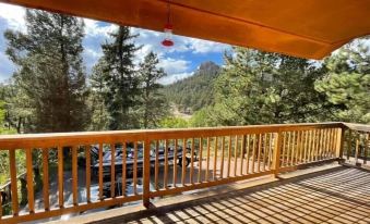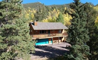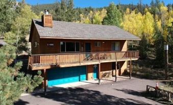 The Columbine on Broken Bow is the perfect mountain getaway, one mile from Eleven Mile Reservoir on 3.5 acres. Our back yard is Pike National Forest. This peaceful cabin is a wonderful retreat location and at 1470 total square feet can comfortably accommodate 8 guests. The upstairs offers a spacious kitchen, living room with a rock wood burning fireplace, two bedrooms & two full baths. Three total bathrooms.