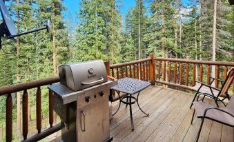 This property has a beautiful well-stocked kitchen with everything you could want or need. It has plenty of space for big family dinners, along with incredible views of the surrounding mountain peaks. The kitchen has access to the deck to make grilling out easy and fun.