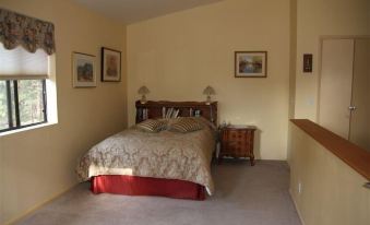 The house has a huge king size bed in the lower main bedroom and a queen in the upstairs loft. There is cushy queen blow up mattress for extra sleepers. There are 2 full private bathrooms one upstairs and one down. The kitchen is really nice, relaxing to cook in and fully stocked with everything a home chef would desire. Toss a ball with your kids in the yard or sprawl out on the comfortable southwest furniture in front of the wood-burning stove and enjoy the view. Cozy and romantic yet spacious enough for 2+ couples or a sizeable family.