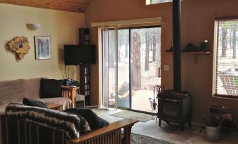 Nature is poetry here. Fields of wildflowers in the summer and magical snow in the winter. The wildlife is bountiful: herds of elk and mule deer are seen roaming the meadows most every evening. It is a birders paradise- one afternoon brought 17 different birds to the feeder. Some of Arizona’s best day hikes are a short drive away. There are many things to do in the area including the Historic Grand Canyon Railway, Bearizona, the Grand Canyon Deer Farm, Snow Bowl, Lowell Observatory, N. Arizona Nordic Center, Elk Ridge Sledding Area, Sedona Pink Jeep Tours and a lot more. Stay here and unwind with the fresh mountain air and spectacular views or make it an exceptional base camp for fun and adventure!