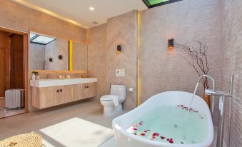 Offering a terrace and pool views, the spacious villa includes 4 bedrooms, a living room, satellite flat-screen TV, an equipped kitchen, and 5 bathrooms with a walk-in shower and a hot tub. The air-conditioned unit at the property features a bath and a dressing room. The villa offers bed linen, towels, and daily room service.