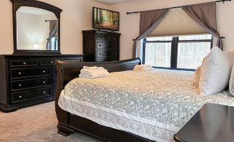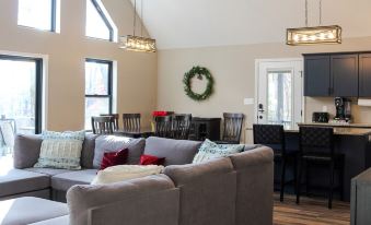 Brand new, open concept, modern chalet located in Jim Thorpe, Poconos, PA. Quiet, tranquil and situated on 3 acres, deep in the woods. 5 large bedrooms with 2 Queens, 2 kings and a bunk room on the lower level. All bedrooms have Roku TV’s. The lower level has a game room, various wooden games, and 3-in-1 game table with ping pong, pool, and air hockey. We also have additional sleeping space in the basement with 2 double bunk beds, and 2 single trundel beds. Whether you are looking for a place to relax after hiking, hitting the slopes, whitewater rafting, shopping for rare finds in the quaint town of Jim Thorpe, or just looking for a relaxing time to unwind and sit around the fire, Mountain Laurel Lodge has just what you are looking for!About pets:Pets allowed: dogs less than 20 lbs per pet (limit 2 pets total).About checkOut:Check out before 11:00 AM.About children:Children allowed: ages 0-17.About checkIn:Check in after 4:00 PM.About smoking:Smoking is not permitted.About minBookingAge:Minimum age to rent: 30.About events:No events allowed.