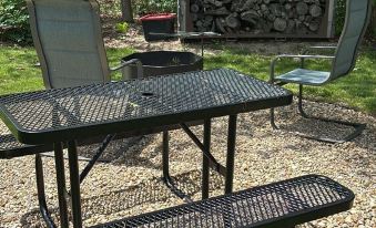 Cook up your favorite dinner in our little kitchen, stocked with pots and pans and the basics you need. Or use the gas grill or fire pit. There is plenty of fire wood for you to enjoy an evening around the fire.