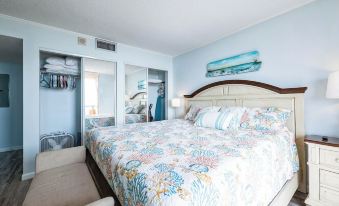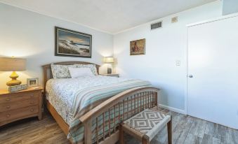 The unit sleeps 6 adults with king bed in master, queen in guest and queen-sized sleeper sofa in living area.
