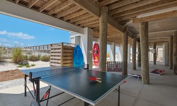 Xbox, Ping pong table, and, Kayaks, Corn hull, Lawn-size Connect Four.