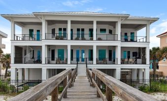 Private boardwalk steps away from the white sand and 3 stories of over 5200 square feet of AMAZING GULF VIEWS!