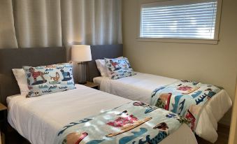 The master bedroom has a queen bed. The second bedroom can be set up as either 2 twin beds or 1 king bed.