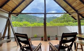 The property offers a relaxing atmosphere, mountain views, and sits 20 minutes from the beaches of Dominical and 20 minutes from San Isidro.