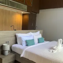 The room, location, service and breakfast are excellent. Well decorated. We loved the breakfast. Location is very close to the pier. Another good thing is that they provide help carrying luggages from and to the pier. But the washroom floor is not properly designed to drain the water. Also they charged extra 800 THB for 10 year old child for one night stay, although I didn’t require extra bed they made it mandatory. That’s not appreciable. Check out time is 11.00 am which seems too early. But they provide luggage storage before departure which is helpful.