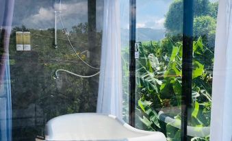 The place had a strong smell. No walls but huge windows closed with curtains. On the second floor you can imagine how hot must be there. The bathroom is super small with curtains. Location is right by the road, super far from the beach, need scooter or taxi, too far to walk. Th reception not everyone speaks English. I wouldn’t recommend
