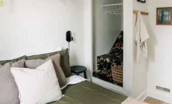 The Forest Room is decorated with mostly plants, has a queen-size bed and an open closet with a spunky wallpaper twist that we think you'll love.