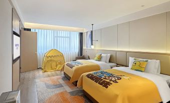 買的攜程三天兩晚套餐,五一節期間每個晚上加50元,性價比還是很高的。房間很大,活動空間很大。可能是住11樓的原因,洗澡花灑出水量不是很大。四樓的空中走廊天氣好可以去散散步,三樓有健身房有一個桌球桌和乒乓球桌。一樓小童遊樂區有點小,滑滑梯有點陡對小年齡小朋友不太友好。自駕遊可以去,靠打車出行就免了,周邊工業區,外部環境和景觀不好。酒店對標的是五星酒店,但是住下來感覺高檔商務酒店網往上一點的標準。前台服務員都很好,打電話叫過好幾次水,機器人都送過來了,前台小謝小王還有一個小卷發戴眼鏡小哥哥服務態度很好,走的時候還送了小朋友一個娃娃和水杯。早餐煮麪條的阿姨也很好,再忙都會笑着説話。早餐種類能滿足吃飽,味道一般,咖啡不是很好喝。甜品味道還不錯,很喜歡那個菠蘿板栗餅(忘記是不是叫這個名字了)。