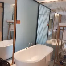 We stayed in a suite, which was probably the most expensive in the area. The equipment was outdated, the toilet was clogged, the water pressure in the shower was very low, the curtains opened and closed automatically, and I had to operate them repeatedly. I called the front desk but no one answered...