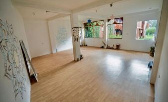 The room is on the second floor of one of the first-built houses in the area. It has a super-comfy king-size bed with a private bathtub and 2 balconies. Blue Lotus has a spacious living room, garden, and a yoga shala.