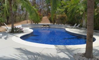 Great base camp location an hour south of Tamarindo and 30 min north of Nosara. Large and spacious 2 bedroom, 2 bath condo, almost 1800 sq ft with patio access from both bedrooms and living room. Both bedrooms feature dual/Eastern king beds and both baths offer double sinks. Kitchen is full size and is fully equipped with most, if not all, that you would need to cook your owns meals (if you choose to do so). Features a breakfast bar that seats 3 along with a table and chairs for 4. Open floor plan. Covered Patio runs the length on the condo and has 4 seats to relax, look at the grounds of the complex, or just listen to the waves from the beach that’s only steps away or the beautiful sounds of nature. There’s a good chance you’ll see monkeys in the neighboring trees along with other wildlife, including a wide range of birds. Great central location to explore the Northern Pacific Coast areas of Guanacaste and the Nicoya Peninsula. Condo has lots of newer upgrades including a couple AC units, TV, refrigerator, washer and dryer, stove, bedding, drapes, blinds and newer ceiling fans in bedrooms, living room and kitchen. Beach towels are also provided.