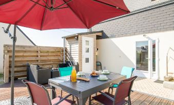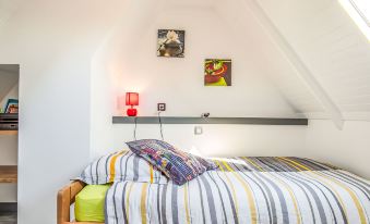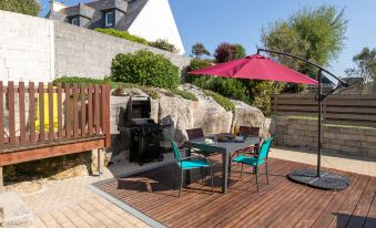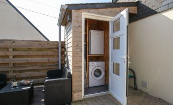 Small, cosy single-family house "Ti Bihan". Porsguen 3.4 km from the centre of Plouescat, in a quiet position, 400 m from the sea, 400 m from the beach, in a cul-de-sac. Private: property 50 m2 with wildlife garden, parking on the premises. Shop 3.4 km, grocery 3.4 km, supermarket 3 km, restaurant 400 m, bar 700 m, bakery 3.4 km, bus stop 2.5 km, sandy beach "Plage de Porsmeur/Porsguen" 400 m, thermal baths "Thalasso Roscoff" 24 km. Sports harbour 550 m, golf course (9 hole) 6 km, surf school, sailing school 600 m, minigolf 1.2 km, walking paths from the house 400 m. Nearby attractions: Réserve ornitholigique, Dunes de Keremma 9 km, Meneham, Kerlouan 19 km, Château de Kerjean 14 km, Roscoff, Jardin exotique, Île de Batz 24 km, Morlaix 40 km, Brest, Oceanopolis 46 km. "Ti Bihan", 3-room house 35 m2 on 2 levels. Fully renovated in 2024, beautiful and cosy furnishings: living/dining room 20 m2 with Scandinavian wood stove and TV (flat screen). Exit to the terrace. Small kitchenette (2 gas rings, toaster, kettle, microwave, electric coffee machine, Capsules for coffee machine (Dolce Gusto) extra). Shower/WC. Upper floor: 1 room 9 m2, with sloping ceilings with 1 french bed (140 cm, length 190 cm). 1 room 9 m2, with sloping ceilings with 1 bed (90 cm, length 190 cm). Electric heating. Terrace 30 m2, south facing position. Terrace furniture, barbecue (portable), deck chairs (2), box-room. Facilities: washing machine, children's high chair, baby cot, hair dryer. Please note: non-smoking house. Smoke alarm. Offer by a private individual according to Art. 155, IV of CGI. 29185000158FU