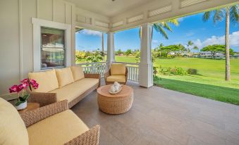 The Lodge at Kukui'ula offers fantastic amenities, including access to a labyrinth of pools, the Hi'ilani Spa, an 18-hole Tom-Weiskopf golf course, a 10-acre private organic farm, and on-property dining options.