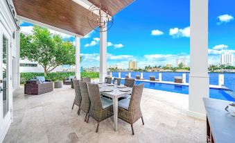 Welcome to this stunning direct intracoastal waterfront home in Pompano Beach, Florida! This luxurious property offers an unforgettable retreat with its spacious layout and high-end amenities, perfect for families or groups looking for a relaxing getaway. Heated Pool, Hot Tub and Sauna included!