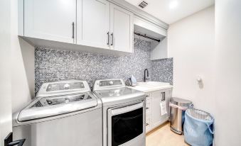 Additionally, guests can enjoy the indoor sauna, a dry cedarwood sauna located on the first floor, perfect for unwinding after a day of exploring. The property also includes a convenient half bathroom downstairs.
