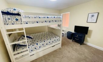 4 bedrooms: 2 bunk beds 1 single bed 1 sofa bed 1 queen bed and 1 king bed