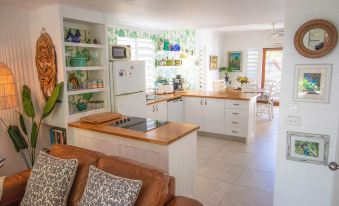 Pandanus cottage offers a unique holiday experience, for those who appreciate the tropical, beach styled ambience and Queensland character. Surrounded by nature, the charming, double story cottage is part of a secluded, quiet complex, known as Fullmoon Terraces.