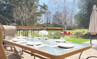⸻About pets:No pets allowed, service animals permitted.About checkOut:Check out before 10:00 AM.About children:Children allowed: ages 0-17.About customRules:Please note there is a pond on the neighbouring property to the west. Adults should always supervise their children during their stay at the property..External security cameras are present for guest safety and property security - front entrance, main deck, side patio, large and small shed, driveway.,Tampering or disconnecting the external security cameras is strictly prohibited..About checkIn:Check in after 4:00 PM.About smoking:Smoking allowed: in designated areas.About minBookingAge:Minimum age to rent: 25.About events:No events allowed.