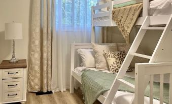 4 bedrooms: 3 bunk beds and 1 queen bed