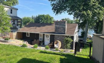 This charming lakefront retreat offers a seamless blend of rustic charm and modern comfort. As you step through the door, be greeted by the warm embrace of natural light dancing through the windows, illuminating the cozy interior with its inviting ambiance. Picturesque windows offer an up-close and personal view of the lake—so close to the clock tower, you can hear the chime of the bells!