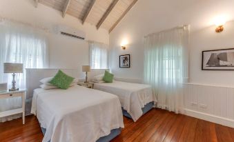 No 7 - the Green Carib, named after our regular hummingbird visitor - is a charming interior designed detached villa with 2 kingsize bedrooms (one of these can be separated into 2 single beds) each with their own en-suite modernised shower rooms. The villa is all on one level, built along traditional Bajan chattel house design with high pickled pine ceilings and polished hardwood floors. There are 3 steps up to the villa but otherwise step-free access to the pool and inside the house.