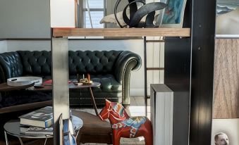 Kick back on the glossy green Chesterfield at this sunlit, loft-style retreat in Munjoy Hill with open shelving bursting with books and eclectic ornaments. Climb the ladder to the cozy mezzanine bedroom for an afternoon nap, then head out to explore.