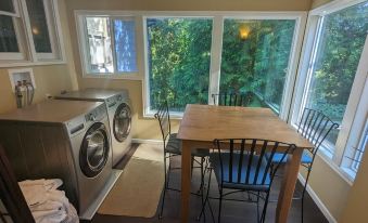 Wonderful stay. Everything went smoothly. The area is incredibly beautiful. We had family both in Beaverton and Northeast Portland...this location was perfect for both. The house is updated with comfy amenities like brand new washer/dryer, dishwasher, fridge. Bathroom was great. Plenty of water pressure and hot water. Warm and cozy atmosphere throughout. Bedrooms were a nice big size with ample closet space and plenty of hangers. I appreciated the computer monitor and HDMI cable to plug into my laptop sooo much! We are coming back to Portland next summer for a wedding, and this home will be the first place we try to stay in if it's available. Price was more than fair. The game closet is PACKED with fun retro games. Amazing forest view out of the back sunroom!