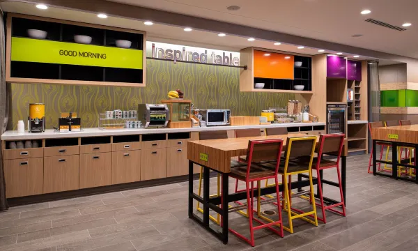 Start each morning of your stay with our Inspired Table free breakfast. Pick up meals and travel essentials at the onsite Home2 MKT. Relax in the lobby with free tea and coffee. Our hotel features a 24-hour business services area, indoor saline swimming pool, as well as Home2s Spin2Cycle fitness/laundry facility, where guests can wash clothes while working out.