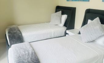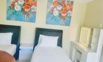 2 bedrooms: 2 single beds and 1 queen bed