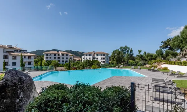 Beautiful residence "Domaine d'Arca". On the outskirts, 2 km from the centre of Porto Vecchio, 4 km from the sea, 8 km from the beach. For shared use: park 4 ha (fenced), swimming pool (seasonal availability: 01.Jun. - 01.Nov. pool opening hours: 10:00-20:00) with internal staircase. Unconventional pool shape. Outdoor shower, poolhouse with WC, tennis (2 x hard court), boccia, pool maintenance by the owner/gardener. Shop 2 km, grocery 1 km, supermarket 2 km, restaurant, bakery 500 m, bus stop 2 km, sandy beach "Santa Giulia" 8 km. Sports harbour 3 km, golf course (9 hole) 7 km, riding stable 3 km. Nearby attractions: Figari 18 km, Bonifacio 28 km, Solenzara 40 km, Iles Lavezzi. Hiking paths: Aiguilles de Bavella, Réserve naturelle de Bonifacio. Please note: car recommended. Suitable for families. Airfield close by 25 km from the property. 5-room apartment 137 m2 on 3rd floor. Very beautiful and modern furnishings: living/dining room with TV (flat screen). Exit to the terrace. 1 room with 1 french bed (160 cm, length 200 cm), shower. Exit to the terrace. 1 room with 1 french bed (160 cm, length 200 cm), shower/WC. Exit to the terrace. 1 room with 2 beds (90 cm, length 190 cm). 1 room with 2 beds (90 cm, length 200 cm). Open kitchen (oven, dishwasher, 3 induction hot plates, toaster, kettle, microwave, freezer, electric coffee machine, Capsules for coffee machine (Tassimo)). Exit to the terrace. Shower, sep. WC. Electric heating, air-conditioning. Large terrace 120 m2. Deck chairs (2). Beautiful view of the mountains. Facilities: washing machine, dryer, iron. Internet (WiFi, free). Parking space n 731 at the house. Please note: non-smokers only. Smoke alarm. Plancha. 2A2470013588E