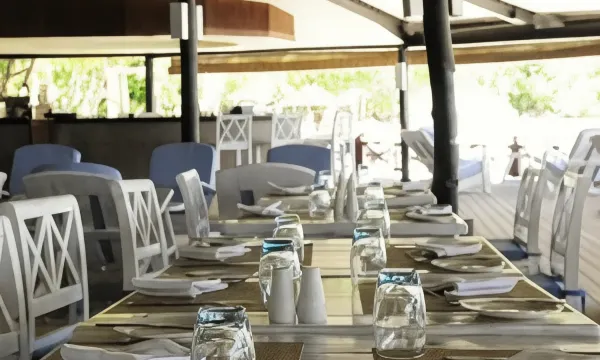 The location is stunning and the Staff are excellent. Staff training in all departments is good and we were looked after as well as any 5 star Hotel we have visited. Very few Brits here ( mainly French ) but nice colonial atmosphere - afternoon tea etc... The room interiors are due a refurb this April but we had no real problems with ours. All have verandas and easy chairs. We opted for Buffet breakfast and dinner option. Yes the breakfast is samey but there is a large choice. Dinners were themed and excellent - well presented and again a large choice. A la carte lunch very good value for the price. Even the drinks were affordable with wines starting at £25. Local village within walking distance with small shops, food shacks, ATMs and money changers. In house Dive Center with two others nearby. The dive options from this side of the Island are fantastic. The bay is shallow so snorkeling to nearby Chauve Souris is easy and well worth it - just mind the sting rays - they can come right in to shore ! We were impressed and saving for another visit soon - thank you