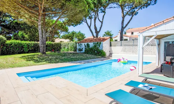 Beautiful single-family house "Le Bigorneau Préfaillais". 30 m from the sea, 150 m from the beach, south facing position. Private: property 835 m2 (fenced), swimming pool (10 x 3 m, depth 150 cm, seasonal availability: 15.Jun. - 15.Sep.) with alarm system. Boules. Bus stop "Plage de la Raize" 600 m, railway station "Gare de Pornic" 12 km. Sports harbour 4.5 km, golf course (18 hole) 10 km, minigolf 10 km, walking paths from the house 20 m. Nearby attractions: Pointe Sainte Gildas 500 m, Biscuiterie Galettes Saint Michel 10 km, Pornic Aventure 13 km, Légendia Parc 29 km, Les Machines de l'Ile de Nantes 61 km, Ile de Noirmoutier 70 km. Well-known lakes can easily be reached: Lac de Saint Viaud 29 km. "Le Bigorneau Préfaillais", 4-room house 104 m2, south facing position. Spacious and bright, fully renovated in 2024, beautiful and tasteful furnishings: living/dining room with panoramic window north facing position and south facing position with dining table and TV (flat screen). Exit to the terrace, south facing position. 1 room with 1 french bed (1 x 160 cm, length 200 cm), shower/WC and double hand-basin. Exit to the swimming pool. 1 room with 2 beds (90 cm, length 190 cm). 1 room with 1 french bed (1 x 160 cm, length 200 cm). Large, open kitchen (oven, dishwasher, 1 ceramic glass hob hotplate, 4 gas rings, toaster, kettle, freezer, electric coffee machine, Capsules for coffee machine (Nespresso Krups) extra, cooking island). Shower/WC. Electric heating. Terrace 25 m2, south facing position, garden 400 m2, north facing position and south facing position. Terrace furniture. Marvellous view of the sea. Facilities: washing machine, hair dryer. Internet (WiFi, free). Parking (fenced 2 cars). Please note: non-smoking house. Smoke alarm. The pool mentioned in the description is for private use. Offer by a commercial proprietor according to Art. 155, IV, CGI 44136000050QV