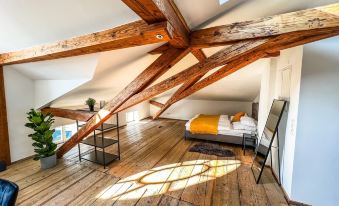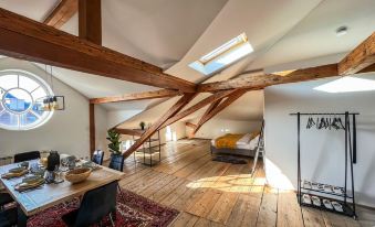 This 100 square metre loft flat on the top floor of a historic residential and commercial building was recently refurbished in grand style and awaits you with a fresh and stylish design.