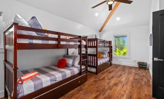 Affectionately named “The Pool House” by our 4 little ones, this house is above and beyond its typical name sake. This sprawling 3,000 sq.ft. home boasts 5 bedrooms and 5.5 bathrooms, with room to sleep at least 18 comfortably. A sleek modern kitchen, outdoor grill, 2 living room areas, and your own pool, complete with water slide and jacuzzi will be the cherry-on-top of your Hawaiian vacation! Come create lasting memories and enjoy time together!