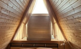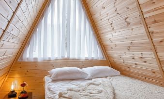 Брали домик на 1 ночь отдохнуть после катания на доске. Очень уютный дом, есть все самое необходимое на кухне для приготовления ужина: посуда, плита, раковина, холодильник, микроволновка. Немного прохладно в мороз, но это решается наличием обогревателя. Кровать для сна на втором этаже, очень уютно и тепло, так как тёплый воздух в основном накапливается там. Внизу на кухне есть раскладывающийся диван, при необходимости можно поместиться в домике в 4ом.